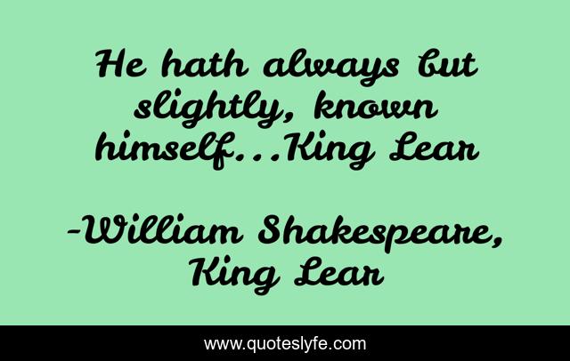 "William Shakespeare, King Lear Quotes." Quoteslyfe.com, 2025. Sun. 07 Dec. 2025. <https://www.quoteslyfe.com/quote/He-hath-always-but-slightly-known-himself-224027>.