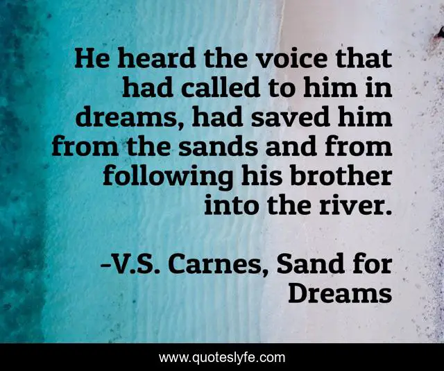 This page presents the quote "He heard the voice that had called to him in dreams, had saved him from the sands and from following his brother into the river.". Author of this quote is V.S. Carnes, Sand for Dreams. This quote is about romance, christian,.