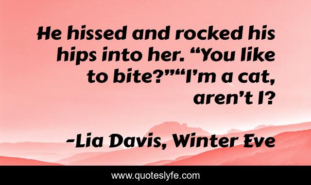 This page presents the quote "He hissed and rocked his hips into her. “You like to bite?”“I’m a cat, aren’t I?". Author of this quote is Lia Davis, Winter Eve. This quote is about winter, ashwood-falls, shapeshifter, lia-davis, magick, romance, shapeshifter-romance, winter-eve, paranormal-romance,.