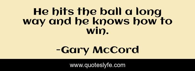 This page presents the quote "He hits the ball a long way and he knows how to win.". Author of this quote is Gary McCord. This quote is about win, long, way,.