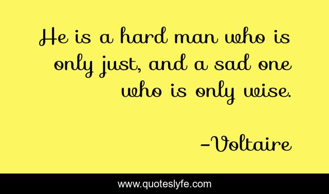 This page presents the quote "He is a hard man who is only just, and a sad one who is only wise.". Author of this quote is Voltaire. This quote is about wise, just, man,.