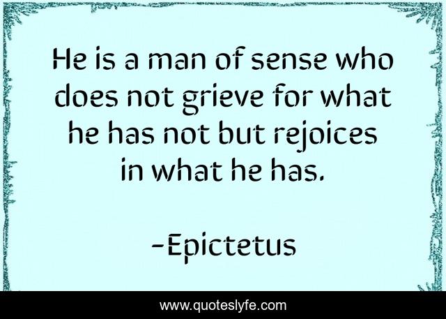 This page presents the quote "He is a man of sense who does not grieve for what he has not but rejoices in what he has.". Author of this quote is Epictetus. .