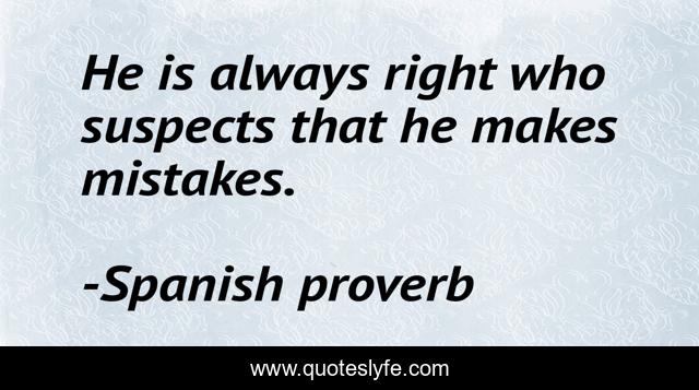 This page presents the quote "He is always right who suspects that he makes mistakes.". Author of this quote is Spanish proverb. This quote is about failures, mistakes,.