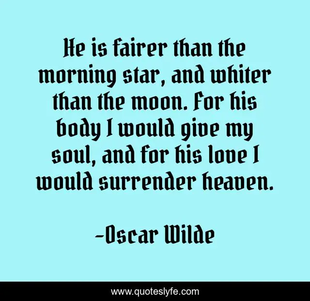 "Oscar Wilde Quotes." Quoteslyfe.com, 2025. Sat. 06 Dec. 2025. <https://www.quoteslyfe.com/quote/He-is-fairer-than-the-morning-star-18559>.