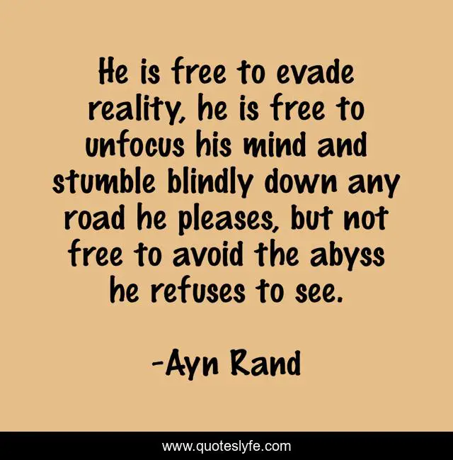 "Ayn Rand Quotes." Quoteslyfe.com, 2025. Fri. 05 Dec. 2025. <https://www.quoteslyfe.com/quote/He-is-free-to-evade-reality-he-4034>.