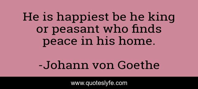 This page presents the quote "He is happiest be he king or peasant who finds peace in his home.". Author of this quote is Johann von Goethe. .