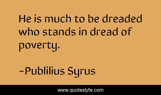 This page presents the quote "He is much to be dreaded who stands in dread of poverty.". Author of this quote is Publilius Syrus. This quote is about future, anxiety,.