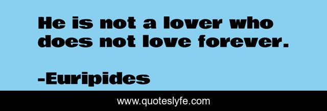 This page presents the quote "He is not a lover who does not love forever.". Author of this quote is Euripides. This quote is about forever, lovers, love, affection,.