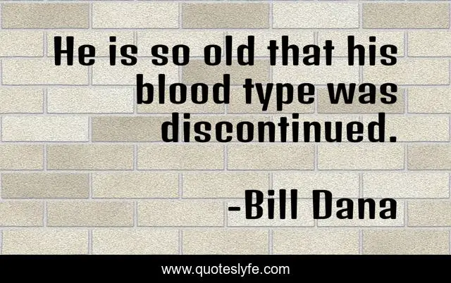 This page presents the quote "He is so old that his blood type was discontinued.". Author of this quote is Bill Dana. This quote is about old, blood, he,.