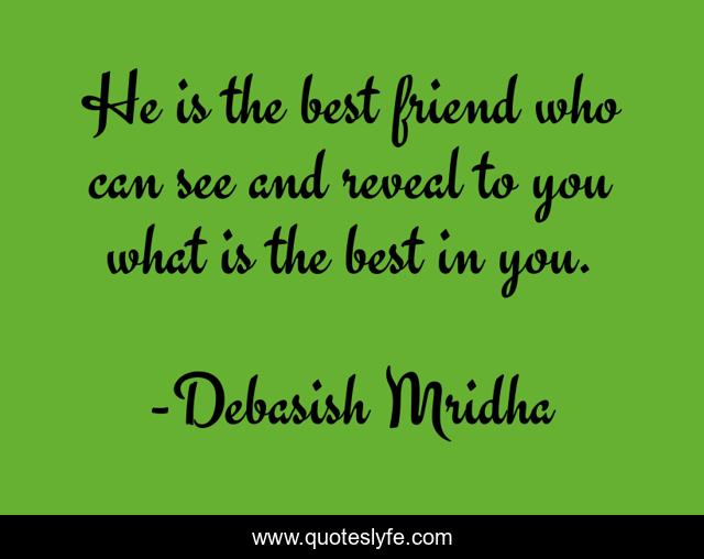 This page presents the quote "He is the best friend who can see and reveal to you what is the best in you.". Author of this quote is Debasish Mridha. This quote is about life, love, knowledge, inspirational, intelligence, philosophy, wisdom, quotes, affection,.