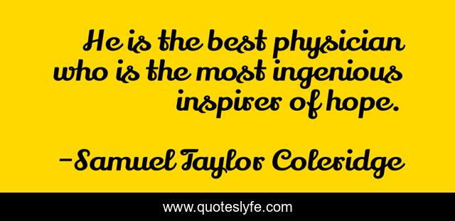 This page presents the quote "He is the best physician who is the most ingenious inspirer of hope.". Author of this quote is Samuel Taylor Coleridge. This quote is about physician, best, most,.