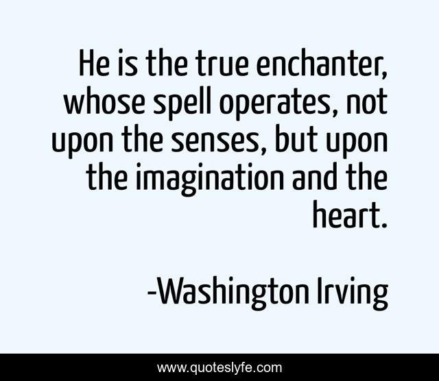 This page presents the quote "He is the true enchanter, whose spell operates, not upon the senses, but upon the imagination and the heart.". Author of this quote is Washington Irving. This quote is about heart, senses, true,.