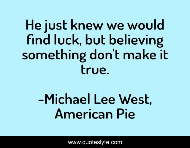 "Michael Lee West, American Pie Quotes." Quoteslyfe.com, 2025. Mon. 08 Dec. 2025. <https://www.quoteslyfe.com/quote/He-just-knew-we-would-find-luck-239627>.
