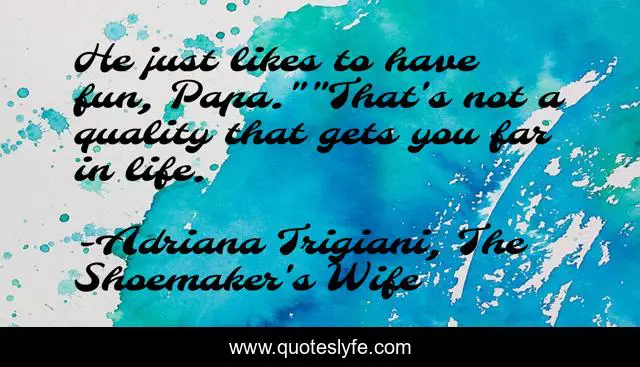 This page presents the quote "He just likes to have fun, Papa.""That's not a quality that gets you far in life.". Author of this quote is Adriana Trigiani, The Shoemaker's Wife. This quote is about fun, serious, life,.