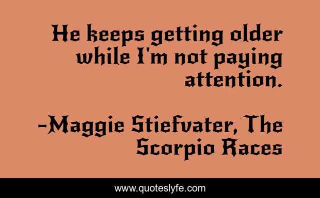 "Maggie Stiefvater, The Scorpio Races Quotes." Quoteslyfe.com, 2025. Fri. 05 Dec. 2025. <https://www.quoteslyfe.com/quote/He-keeps-getting-older-while-I-m-86057>.
