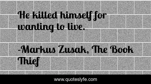 This page presents the quote "He killed himself for wanting to live.". Author of this quote is Markus Zusak, The Book Thief. This quote is about death, life, suicide,.