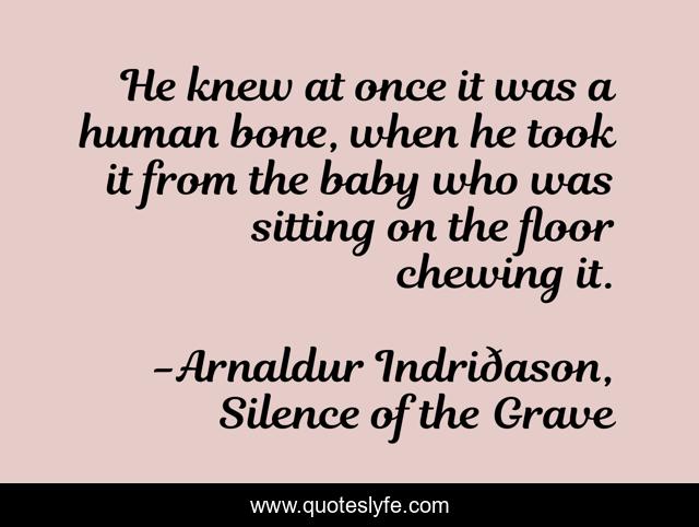 This page presents the quote "He knew at once it was a human bone, when he took it from the baby who was sitting on the floor chewing it.". Author of this quote is Arnaldur Indriðason, Silence of the Grave. .
