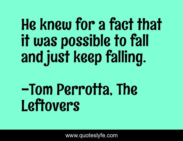 This page presents the quote "He knew for a fact that it was possible to fall and just keep falling.". Author of this quote is Tom Perrotta, The Leftovers. This quote is about falling, possible, fall,.