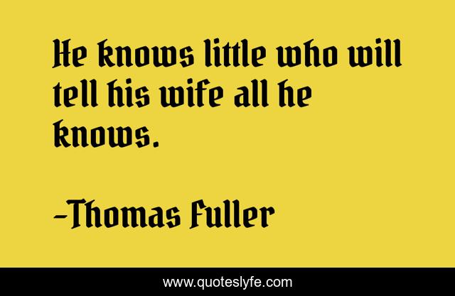 This page presents the quote "He knows little who will tell his wife all he knows.". Author of this quote is Thomas Fuller. .