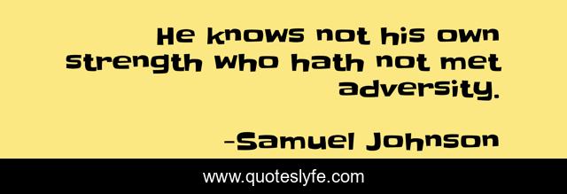 "Samuel Johnson Quotes." Quoteslyfe.com, 2025. Mon. 08 Dec. 2025. <https://www.quoteslyfe.com/quote/He-knows-not-his-own-strength-who-259820>.