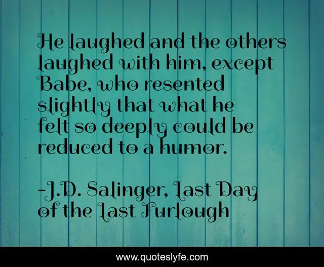This page presents the quote "He laughed and the others laughed with him, except Babe, who resented slightly that what he felt so deeply could be reduced to a humor.". Author of this quote is J.D. Salinger, Last Day of the Last Furlough. .