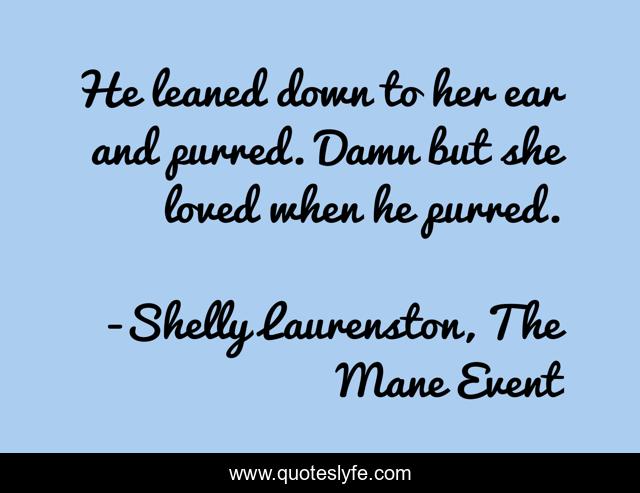 This page presents the quote "He leaned down to her ear and purred. Damn but she loved when he purred.". Author of this quote is Shelly Laurenston, The Mane Event. This quote is about shifters, dez, pride, mace,.