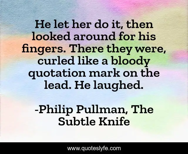 "Philip Pullman, The Subtle Knife Quotes." Quoteslyfe.com, 2025. Fri. 05 Dec. 2025. <https://www.quoteslyfe.com/quote/He-let-her-do-it-then-looked-81973>.