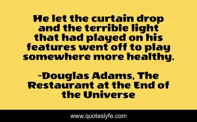 "Douglas Adams, The Restaurant at the End of the Universe Quotes." Quoteslyfe.com, 2025. Fri. 05 Dec. 2025. <https://www.quoteslyfe.com/quote/He-let-the-curtain-drop-and-the-118408>.