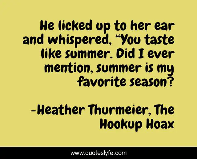 This page presents the quote "He licked up to her ear and whispered, “You taste like summer. Did I ever mention, summer is my favorite season?". Author of this quote is Heather Thurmeier, The Hookup Hoax. This quote is about humorous, contemporary-romance,.