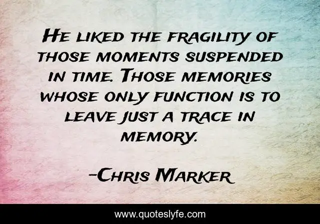 This page presents the quote "He liked the fragility of those moments suspended in time. Those memories whose only function is to leave just a trace in memory.". Author of this quote is Chris Marker. .
