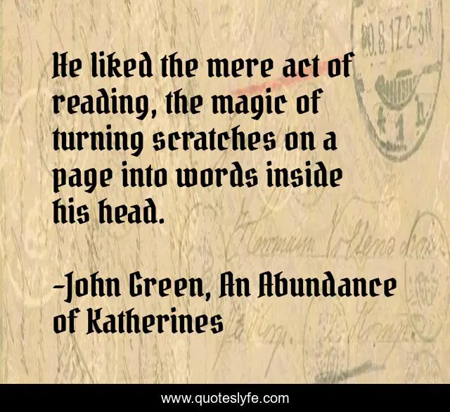 "John Green, An Abundance of Katherines Quotes." Quoteslyfe.com, 2025. Fri. 05 Dec. 2025. <https://www.quoteslyfe.com/quote/He-liked-the-mere-act-of-reading-42684>.