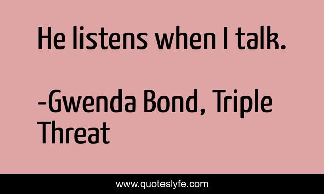 "Gwenda Bond, Triple Threat Quotes." Quoteslyfe.com, 2025. Mon. 15 Dec. 2025. <https://www.quoteslyfe.com/quote/He-listens-when-I-talk-85988>.