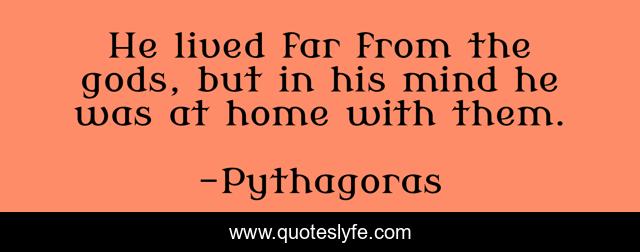 This page presents the quote "He lived far from the gods, but in his mind he was at home with them.". Author of this quote is Pythagoras. This quote is about eternity, god, wisdom,.
