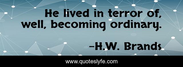 This page presents the quote "He lived in terror of, well, becoming ordinary.". Author of this quote is H.W. Brands. This quote is about distinction, excellence,.