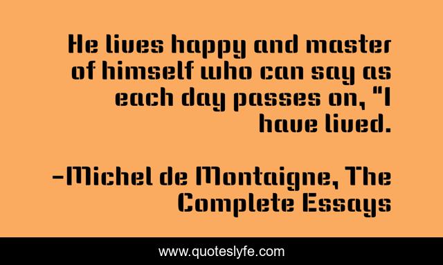 "Michel de Montaigne, The Complete Essays Quotes." Quoteslyfe.com, 2025. Mon. 08 Dec. 2025. <https://www.quoteslyfe.com/quote/He-lives-happy-and-master-of-himself-105600>.