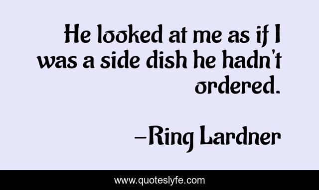 This page presents the quote "He looked at me as if I was a side dish he hadn't ordered.". Author of this quote is Ring Lardner. This quote is about quips, comments,.