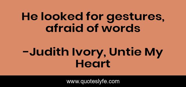 "Judith Ivory, Untie My Heart Quotes." Quoteslyfe.com, 2025. Fri. 05 Dec. 2025. <https://www.quoteslyfe.com/quote/He-looked-for-gestures-afraid-of-words-120265>.