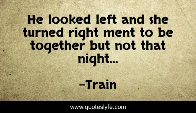 This page presents the quote "He looked left and she turned right ment to be together but not that night...". Author of this quote is Train. .