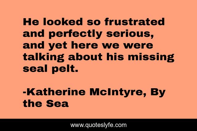 This page presents the quote "He looked so frustrated and perfectly serious, and yet here we were talking about his missing seal pelt.". Author of this quote is Katherine McIntyre, By the Sea. This quote is about selkie, revelation, paranormal, seal-pelt, supernatural, fae,.