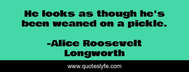This page presents the quote "He looks as though he's been weaned on a pickle.". Author of this quote is Alice Roosevelt Longworth. This quote is about pickle, looks, been,.