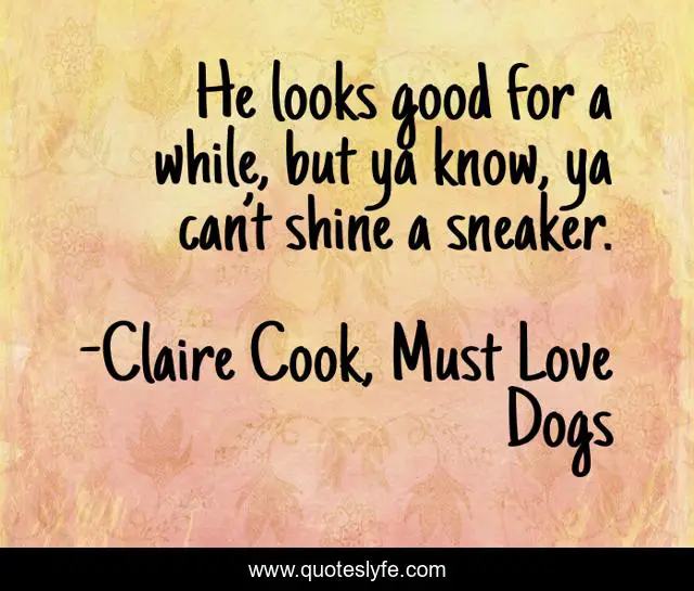This page presents the quote "He looks good for a while, but ya know, ya can’t shine a sneaker.". Author of this quote is Claire Cook, Must Love Dogs. This quote is about single-women, dating, personal-ads,.