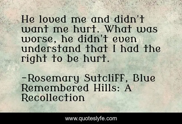 This page presents the quote "He loved me and didn't want me hurt. What was worse, he didn't even understand that I had the right to be hurt.". Author of this quote is Rosemary Sutcliff, Blue Remembered Hills: A Recollection. This quote is about agency, self-determination,.