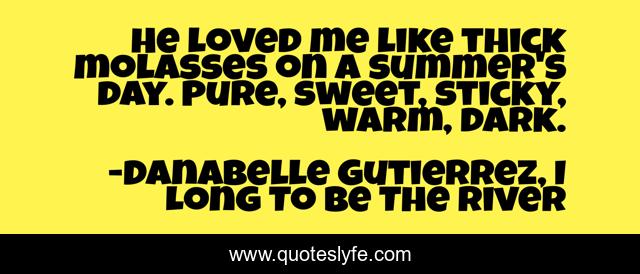 This page presents the quote "He loved me like thick molasses on a summer's day. Pure, sweet, sticky, warm, dark.". Author of this quote is Danabelle Gutierrez, I Long To Be The River. .