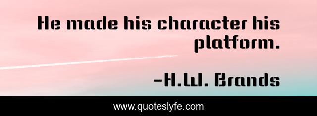 This page presents the quote "He made his character his platform.". Author of this quote is H.W. Brands. This quote is about discipleship, leadership, inspiration,.