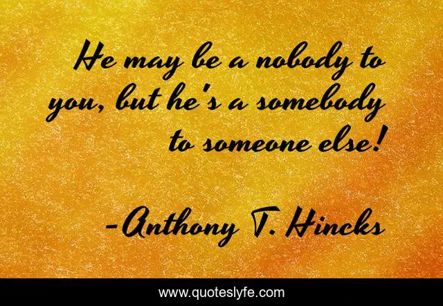 "Anthony T. Hincks Quotes." Quoteslyfe.com, 2025. Sat. 06 Dec. 2025. <https://www.quoteslyfe.com/quote/He-may-be-a-nobody-to-you-8785>.