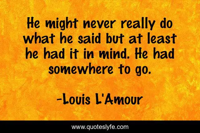 This page presents the quote "He might never really do what he said but at least he had it in mind. He had somewhere to go.". Author of this quote is Louis L'Amour. .