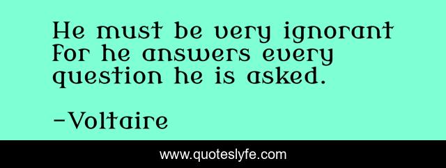 This page presents the quote "He must be very ignorant for he answers every question he is asked.". Author of this quote is Voltaire. This quote is about ignorance, wisdom,.