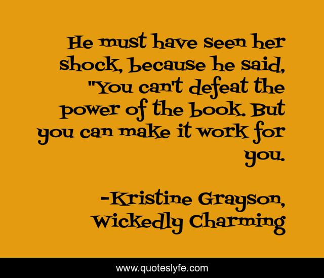 This page presents the quote "He must have seen her shock, because he said, "You can't defeat the power of the book. But you can make it work for you.". Author of this quote is Kristine Grayson, Wickedly Charming. This quote is about romance, books,.