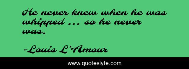 "Louis L'Amour Quotes." Quoteslyfe.com, 2025. Mon. 08 Dec. 2025. <https://www.quoteslyfe.com/quote/He-never-knew-when-he-was-whipped-271563>.