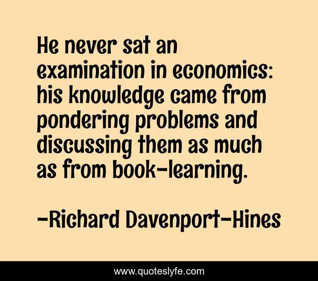 "Richard Davenport-Hines Quotes." Quoteslyfe.com, 2025. Mon. 08 Dec. 2025. <https://www.quoteslyfe.com/quote/He-never-sat-an-examination-in-economics-209896>.